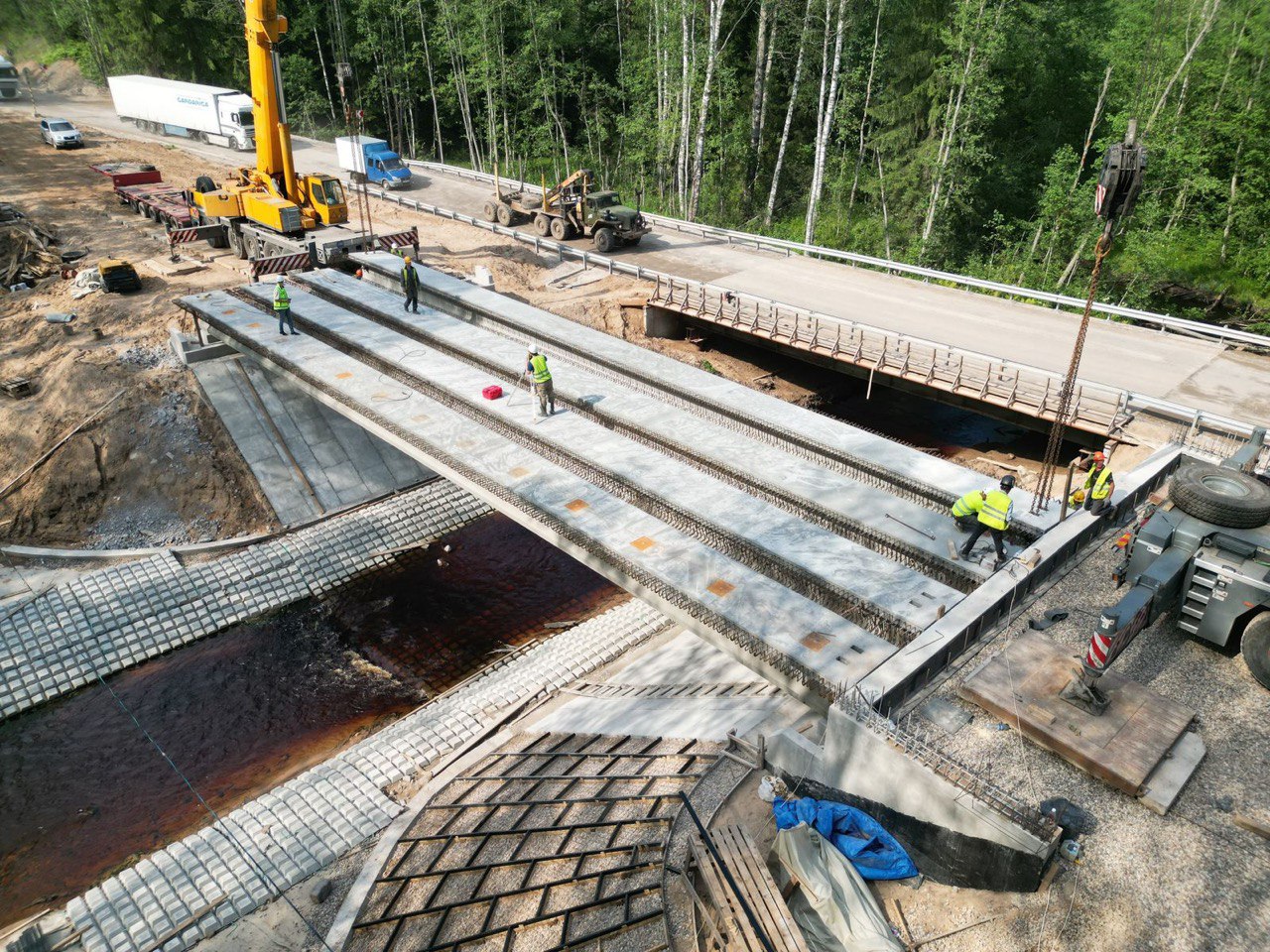 В Псковской области на мосту через реку Черную завершен монтаж балок